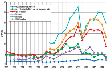 Fig. 1. Past feedstock prices, in constant 2014 dollars.