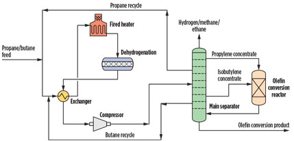 However, the dehydrogenation of propane and isobutane to make high-purity, polymer-grade propylene and isobutylene, respectively, involves a very expensive product purification facility. The costs for this type of facility are high both in terms of capital and operating expenditures.