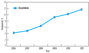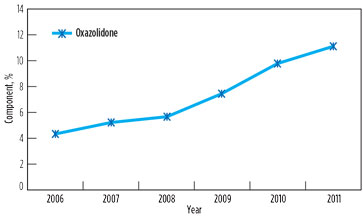 FIG. 4. Change in oxazolidone content in lean solution in GSU-12, 2006–2011. |