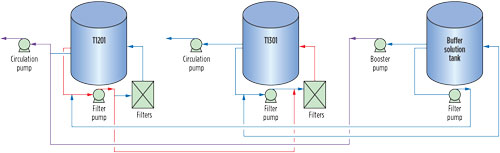 - Prepare fresh higher-tech solvent solution for circulation in the buffer solution tank