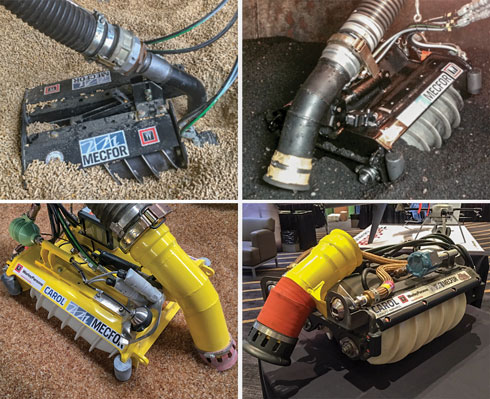 FIG. 3. Robotic catalyst removal systema prototype development—clockwise from top left: Versions 1.0, 2.0, 2.1 and 3.0.