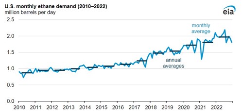 Driven by petrochemical capacity builds, U.S. ethane increased 9% in 2022
