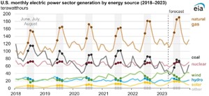 In addition to the continuing growth in generation from renewable energy sources, we forecast 4.5 TWh more nuclear generation this summer than in summer 2022 as result of the planned opening of a new reactor at the Vogtle nuclear power plant. In contrast to this newly added nuclear capacity, a number of reactors at other nuclear plants have retired in recent years.