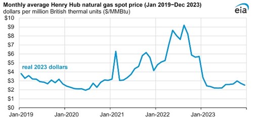 U.S. Henry Hub natural gas prices in 2023 were the lowest since mid-2020
