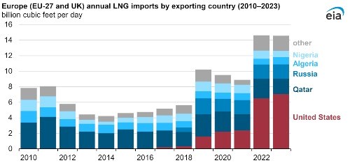 The U.S. remained the largest liquefied natural gas supplier to Europe in 2023