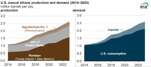 U.S. ethane production, consumption, and exports set new records again in 2023