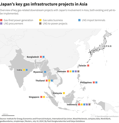 Led by JERA, Tokyo Gas, Osaka Gas and Kansai Electric Power, Japan is a stakeholder, feedstock provider or participant in studies for more than 30 gas-related projects, data from the Institute for Energy Economic and Financial Analysis (IEEFA) and Reuters shows. Whether operating or yet to be launched, these are located in Bangladesh, India, Indonesia, Malaysia, Myanmar, the Philippines, Singapore, Taiwan, Thailand, and Vietnam.