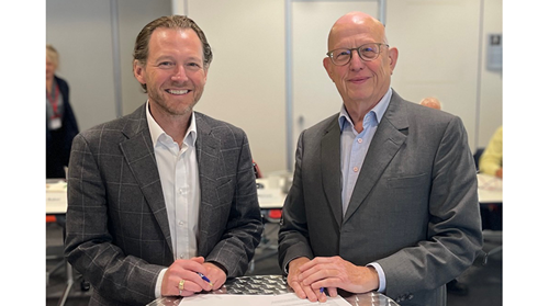The MoU was signed in June 2024 by Alan E. Nelson (left), AIChE’s 2024 President and Vice President of Technology – New Energy at SLB; and Nigel Hirst, 2023–2024 President of IChemE, during a meeting of AIChE and IChemE trustees held in London, U.K.
