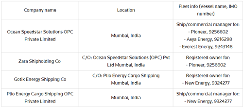 Below are the companies designated by the U.S. state department, as well as the vessels they own or manage, according to data from Equasis and Kpler: