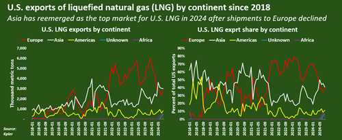 Continued muted LNG demand in Europe and further growth in Asia may test the resolve of U.S. exporters to remain the world's largest LNG sellers, as several far-flung Asian markets can be more cheaply supplied by other sellers.