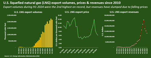 That was the lowest half-year revenue total since the first half of 2021, and marks a more than $12-B fall from the second half of 2022 when U.S. export earnings from LNG peaked.