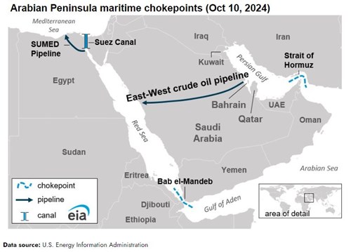 Chokepoints are narrow channels along widely used global sea routes, and they are critical to global energy security. The inability of oil to transit a major chokepoint, even temporarily, can lead to substantial supply delays and higher shipping costs, resulting in higher world energy prices.