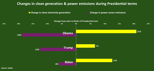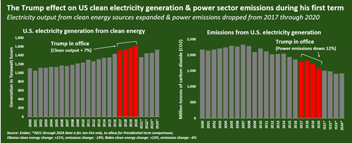 During Trump's first term, U.S. electricity production from clean sources increased by 7%, fossil-fired generation dropped by 4%, and total emissions from power generation declined by 12%, according to energy think tank Ember.