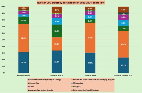 Still, some types of Russian LPG are eligible for exports, but account for around a fifth of total LPG, which Russia used to export.