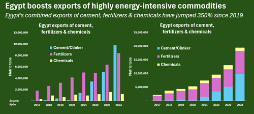 Egypt's combined exports of cement, fertilizers and chemicals doubled between 2022 and 2024 and have grown by 350% since 2019 thanks to increased government support aimed at spurring rapid industrial expansion.