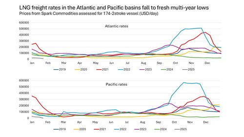 Chinese tariffs on U.S. LNG and record amounts of newbuild vessels due to enter the market this year will compound this effect, said Spark's Afghan, adding that freight rates could remain at current levels for the rest of the month.