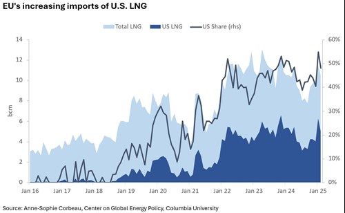 While European Commission President Ursula von der Leyen has indicated that the EU may be willing to import more U.S. liquefied natural gas (LNG), in part to reduce the bloc’s trade deficit with the U.S., making this happen could get complicated.