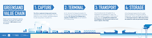 Greensand has secured liquefied CO₂ from several Danish biogas plants. Once captured, the CO₂ will be transported by truck to the terminal in Esbjerg, where it will be temporarily stored.
