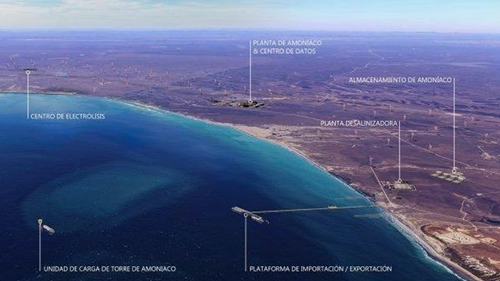 The project, run by the Chilean subsidiary TEC H2 MAG, is expected to begin operations in 2030 and includes a wind farm, seven electrolysis centers for green hydrogen, a desalination plant, an ammonia plant and maritime infrastructure for shipping.