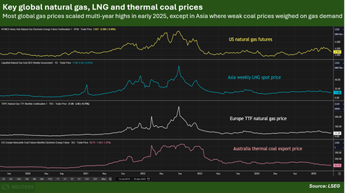 Relatively high international gas prices - especially compared to thermal coal - helped to curb Asian interest in LNG imports for far in 2025, although Asian spot LNG prices recently sank to 11-month lows amid weak buying interest.