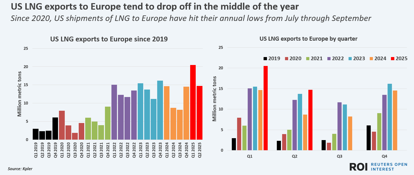 Between 2021 and 2024, U.S. LNG exports to Asia during May, June and July averaged around 7.8 MM tonnes (t) a month, according to data from commodity intelligence firm Kpler.
