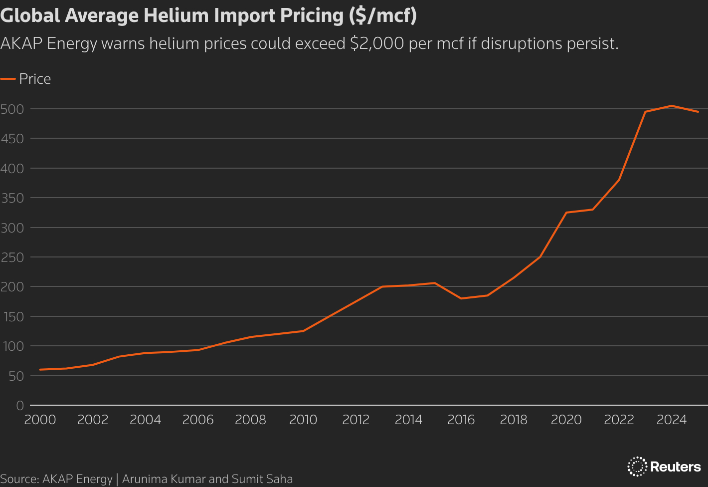 Helium prices soar as Qatar LNG halt exposes fragile supply chain