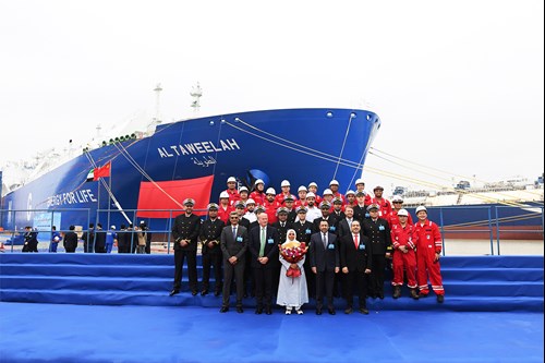 Ms. Muna Mussa, Manager of General Services at ADNOC L&S, acted as ‘godmother’ in the naming ceremony of Al Taweelah, which means “the long one” in Arabic. The ceremony was held at Jiangnan Shipyard in Shanghai.
