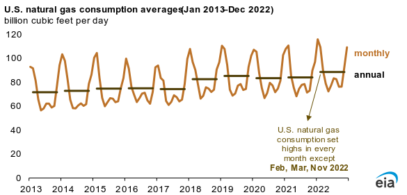 U.S. natural gas consumption sets 9 month record and an annual record in 2022