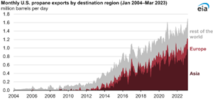 Monthly U.S. propane exports in March 2023 reach a record high
