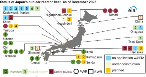Data source: U.S. Energy Information Administration, International Energy Statistics; Nuclear Regulation Authority Japan