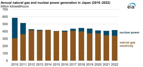 Nuclear reactor restarts in Japan have reduced LNG imports for electricity generation