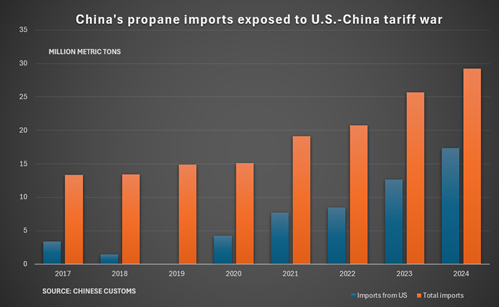 The trade war during President Donald Trump's first term brought China's LPG imports to a halt for nearly 2 yr, but the industry was much smaller then, and operators used cargoes from the Middle East as replacement.