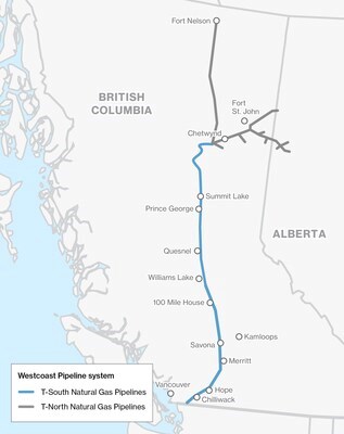 About Enbridge's Westcoast natural gas pipeline system. Enbridge's Westcoast natural gas pipeline system is an essential piece of energy infrastructure that is capable of transporting up to 3.6 Bft3d of natural gas. Owned by Westcoast Energy Inc., a wholly owned subsidiary of Enbridge, this system stretches more than 2,900 kilometers from Fort Nelson in northeast B.C. and from Gordondale near the B.C.-Alberta border, south to the Canada-U.S. border at Huntingdon/Sumas. The natural gas transported on this pipeline system provides safe, secure and affordable energy that people rely on throughout B.C. and the Lower Mainland, Alberta and the U.S. Pacific Northwest.