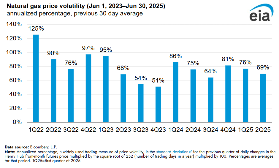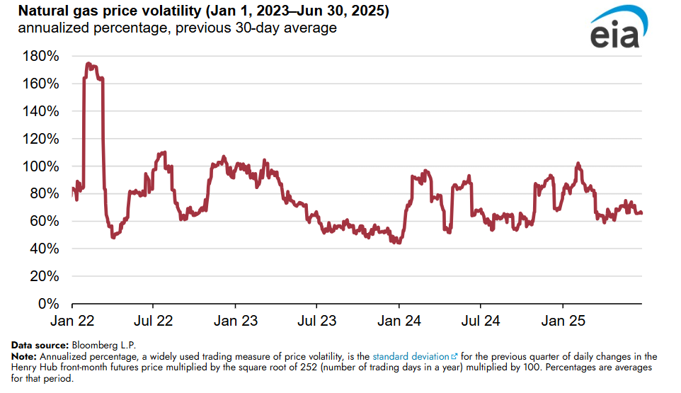 EIA: Natural gas price volatility fell over the first half of 2025