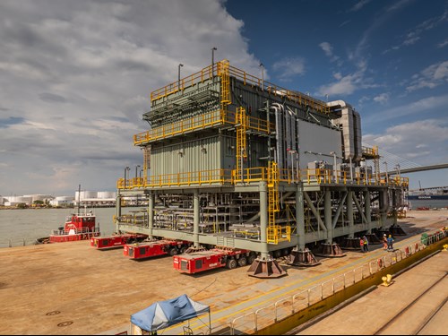 As part of a major Canadian LNG project, deugro Canada, in close collaboration with deugro USA and the team from dteq Transport Engineering Solutions (dteq), successfully delivered a massive over 1,334-metric-ton and 38.3 x 31.6 x 21.3-meter module to a deck barge at the Port of Corpus Christi, Texas, U.S.