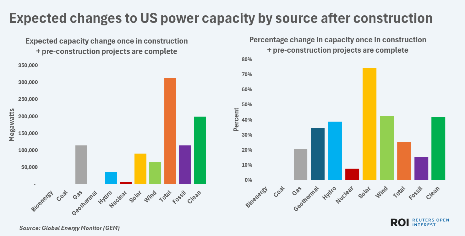 That capacity total is more than twice as large as what was in developer pipelines a year ago. Gas plants are the single largest power source among all planned capacity additions at the construction and pre-construction stages, GEM data shows.