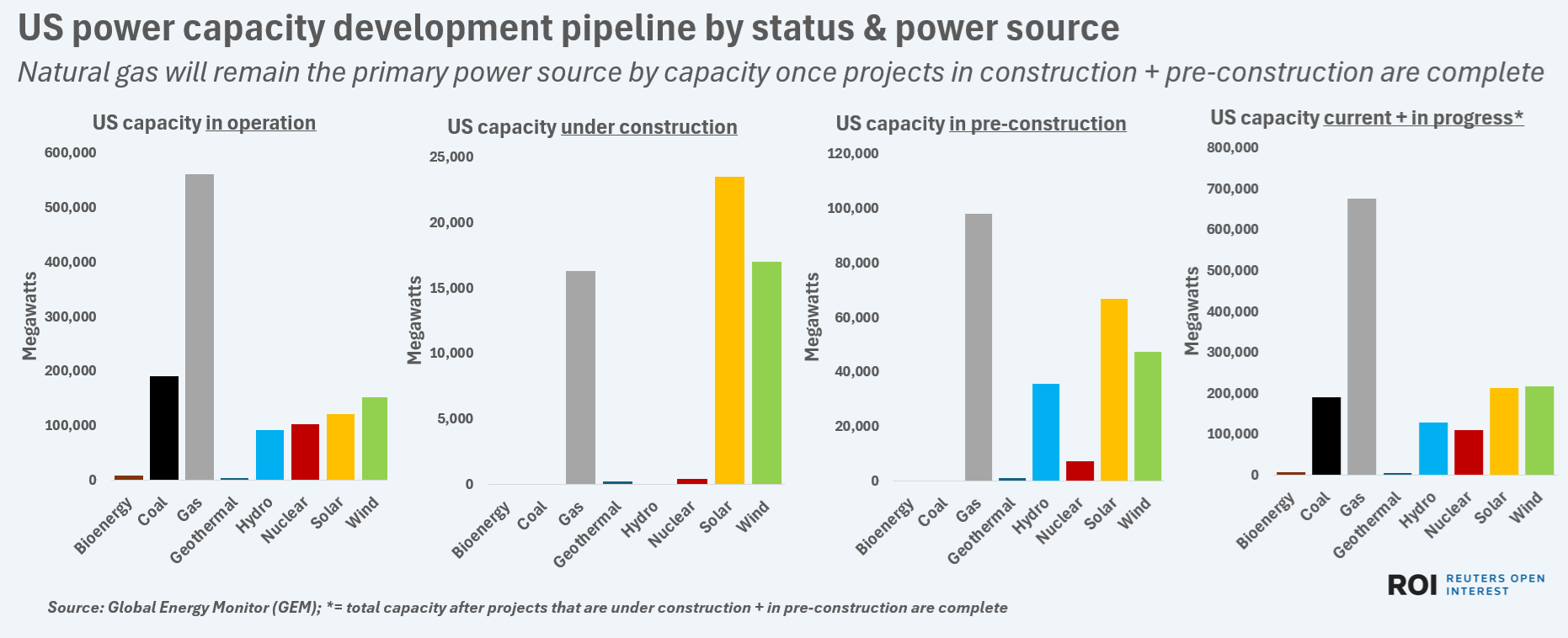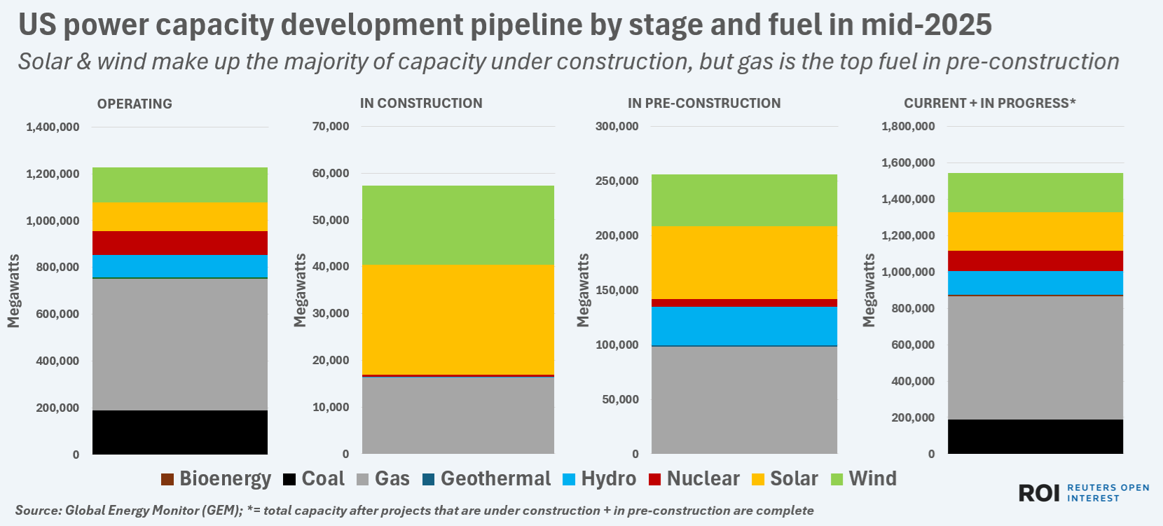 As of mid-2025, U.S. power developers had just over 114,000 megawatts (MW) of natural gas capacity under construction or in so-called pre-construction, according to data from Global Energy Monitor (GEM).